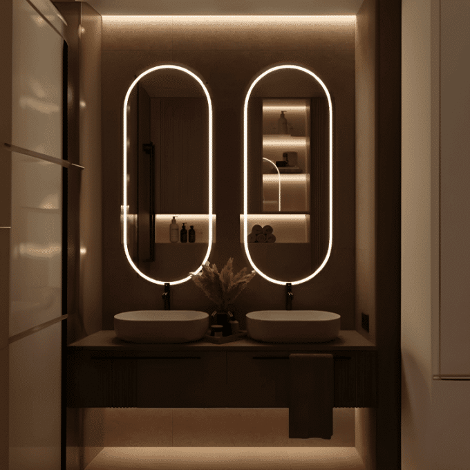 Espejo ovalado con iluminación LED-Örebro – Scandi Mirror